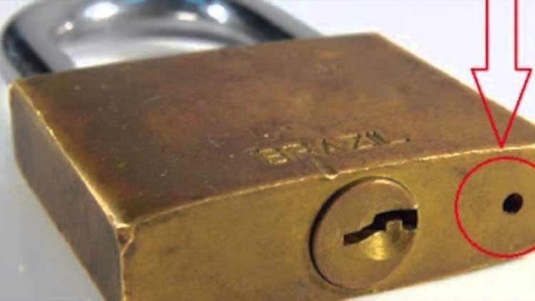 자물쇠를 자세히 보시면, 아래 부분에 작은 구멍이 있다는 것을 발견하실 것입니다. 이 구멍의 목적을 알고 계십니까?