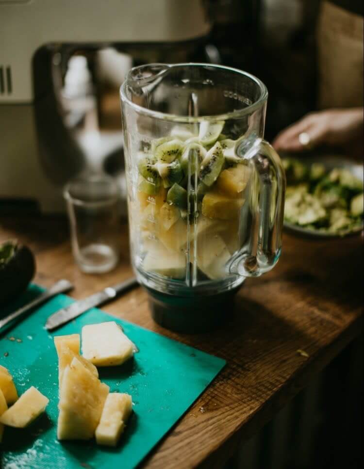 믹서기를 잘 사용하는 법은, 액체류를 가장 아래에 붓고 그 위에 고채를 넣는 것입니다. 소용돌이가 고체를 더욱 부드럽게 갈아 줄것입니다.