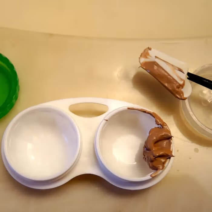 이쑤시개로 립스틱이나 파운데이션, 컨실러를 콘택트 렌즈 케이스 밑부분에 살짝 펴 발라주세요. 그것들은 놀라운 양의 제품을 담을 수 있을 만큼 충분히 깊습니다.